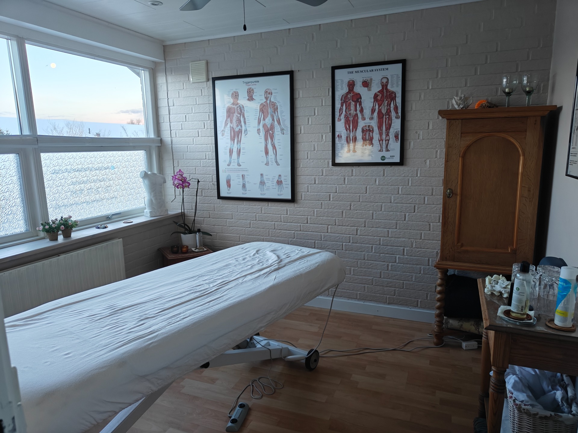 Alt hvad i skal gøre er at stille et lokale til rådighed med adgang til toilet og vand, så medbringer jeg briks og massageolie.